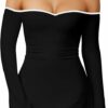 - Feature: Off Shoulder Neck, Fold Over, Long Sleeve, Ruched Design, Solid, Slim Fit, Mini Dresses for Women