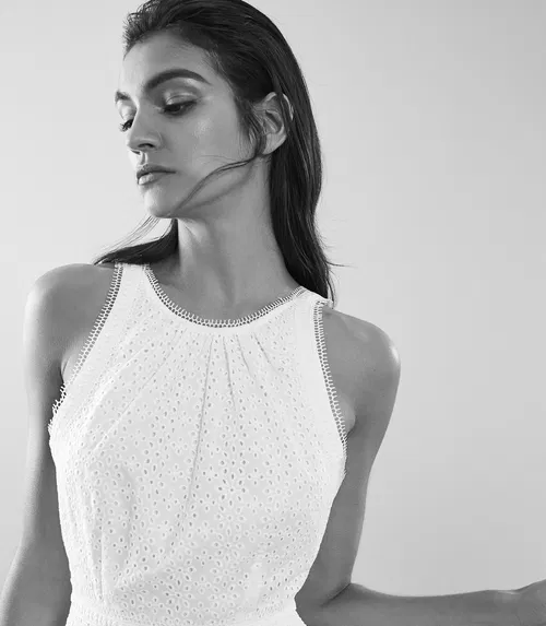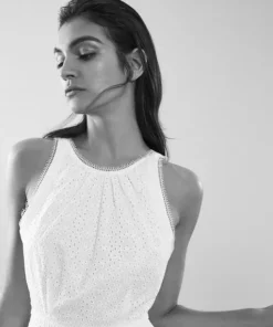 Elevate your occasionwear wardrobe with the Lydia white lace dress, a stunning piece featuring the timeless broderie anglaise design. Crafted from 100% cotton, this dress offers breathable comfort while embracing summer’s most loved trend—romantic lacework.
