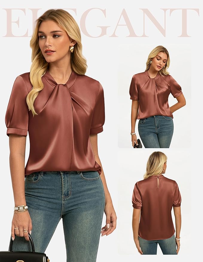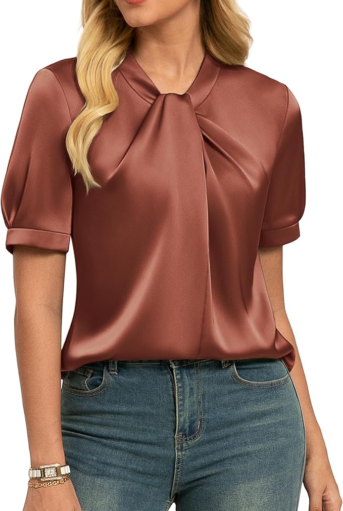 - Fabric: Satin blouses for women from lightweight silky satin fabric highlighting delicacy, luster, and smooth and elegant drape.